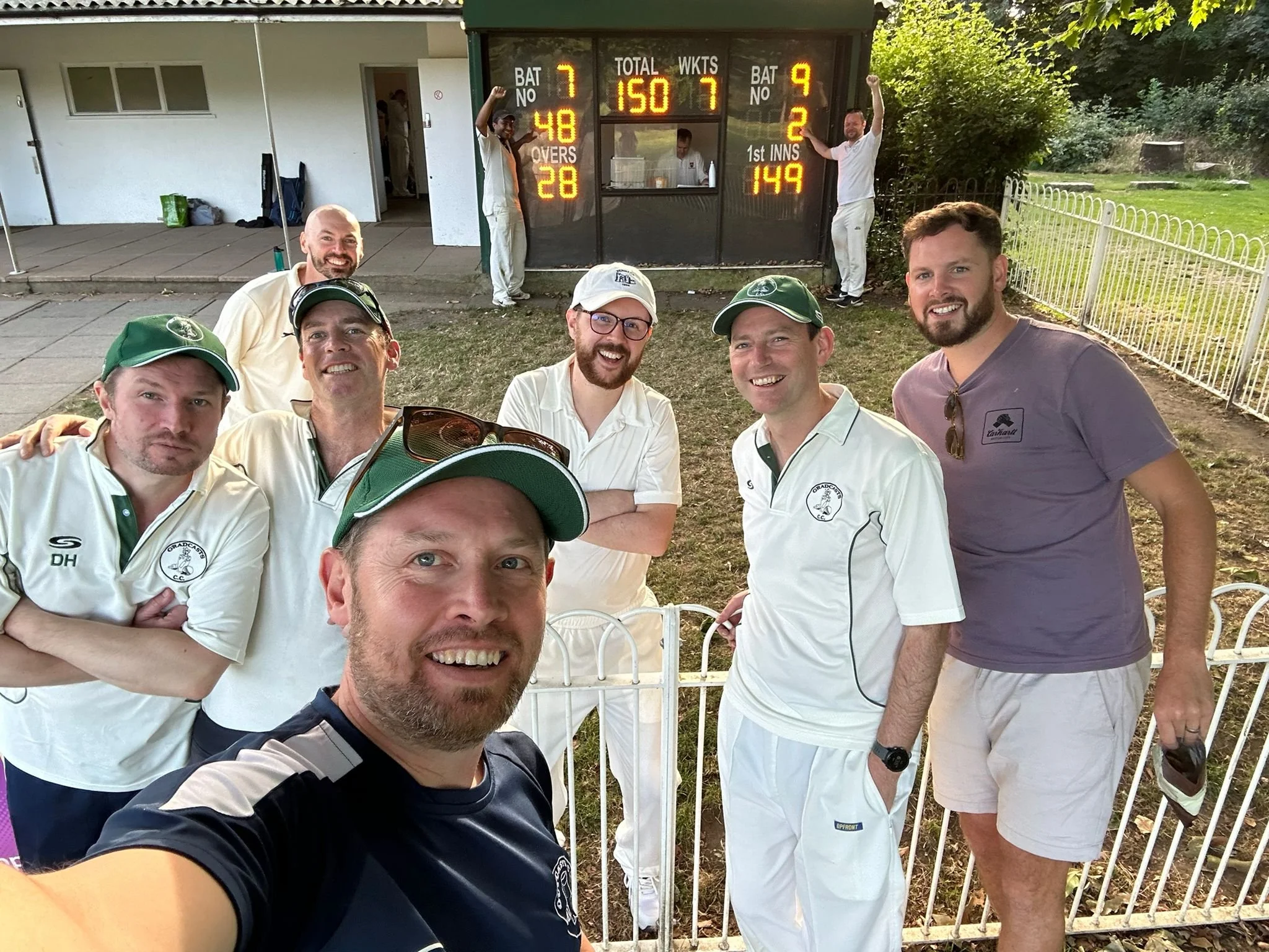 The promising debuts continued. Ed, who said beforehand he wasn’t sure “what would come out” when he tried bowling, got involved in the wickets column during a threatening spell. And our fourth debutant, Rich, kept things tight and finished the innings off with a wicket of his own.